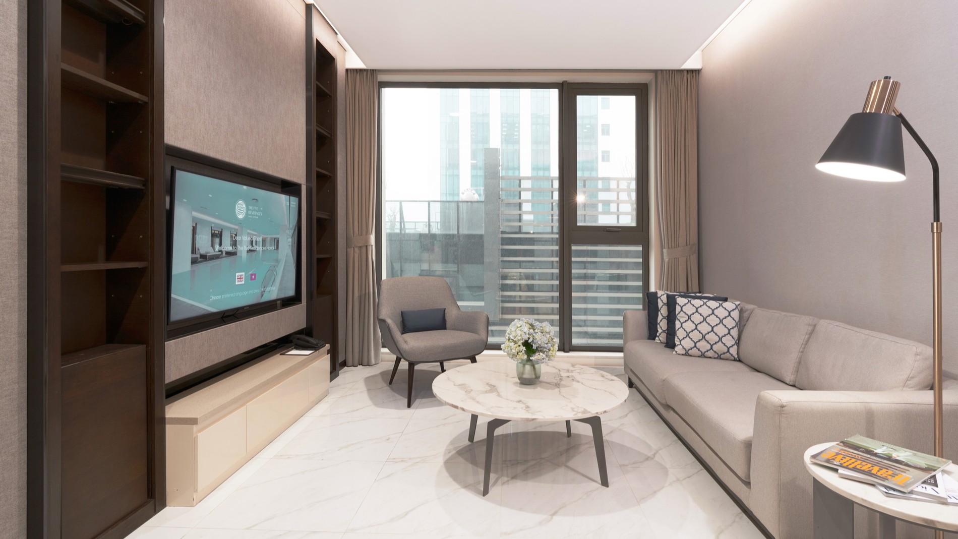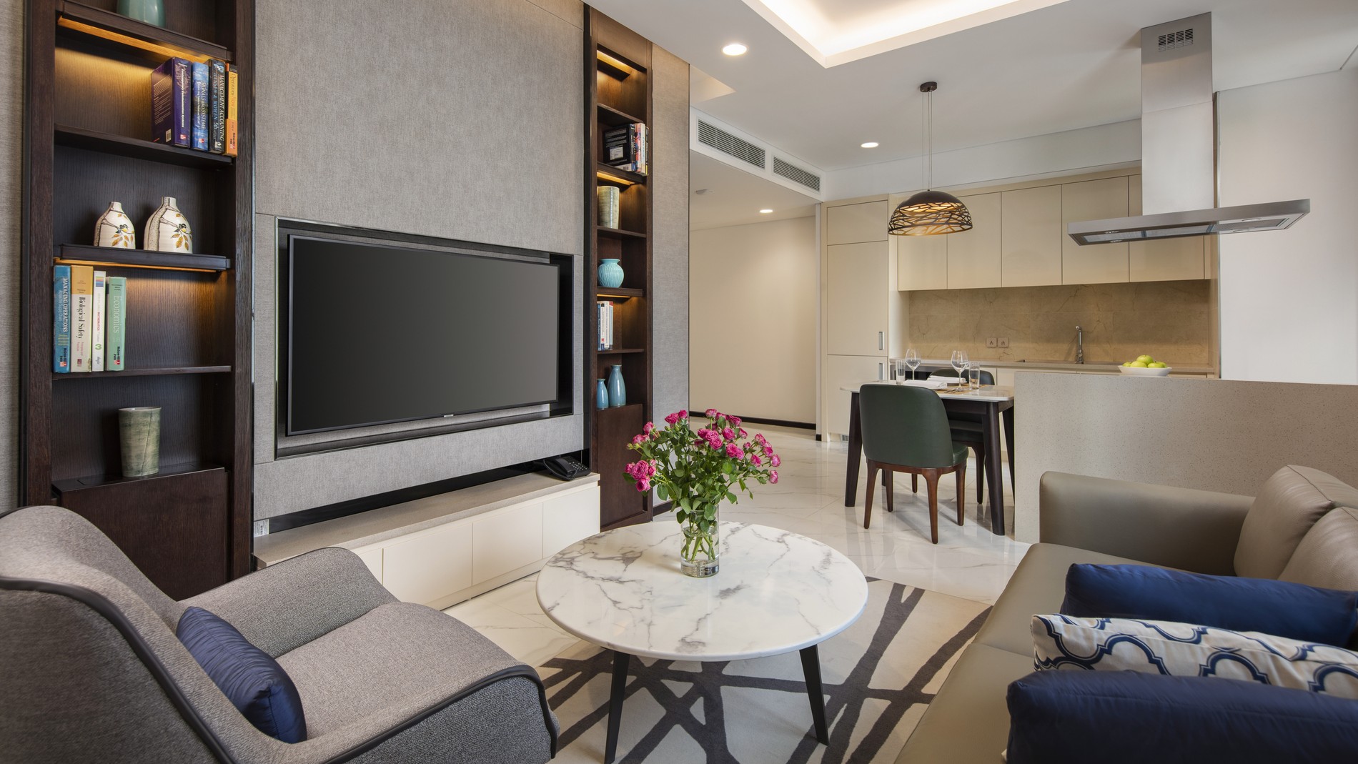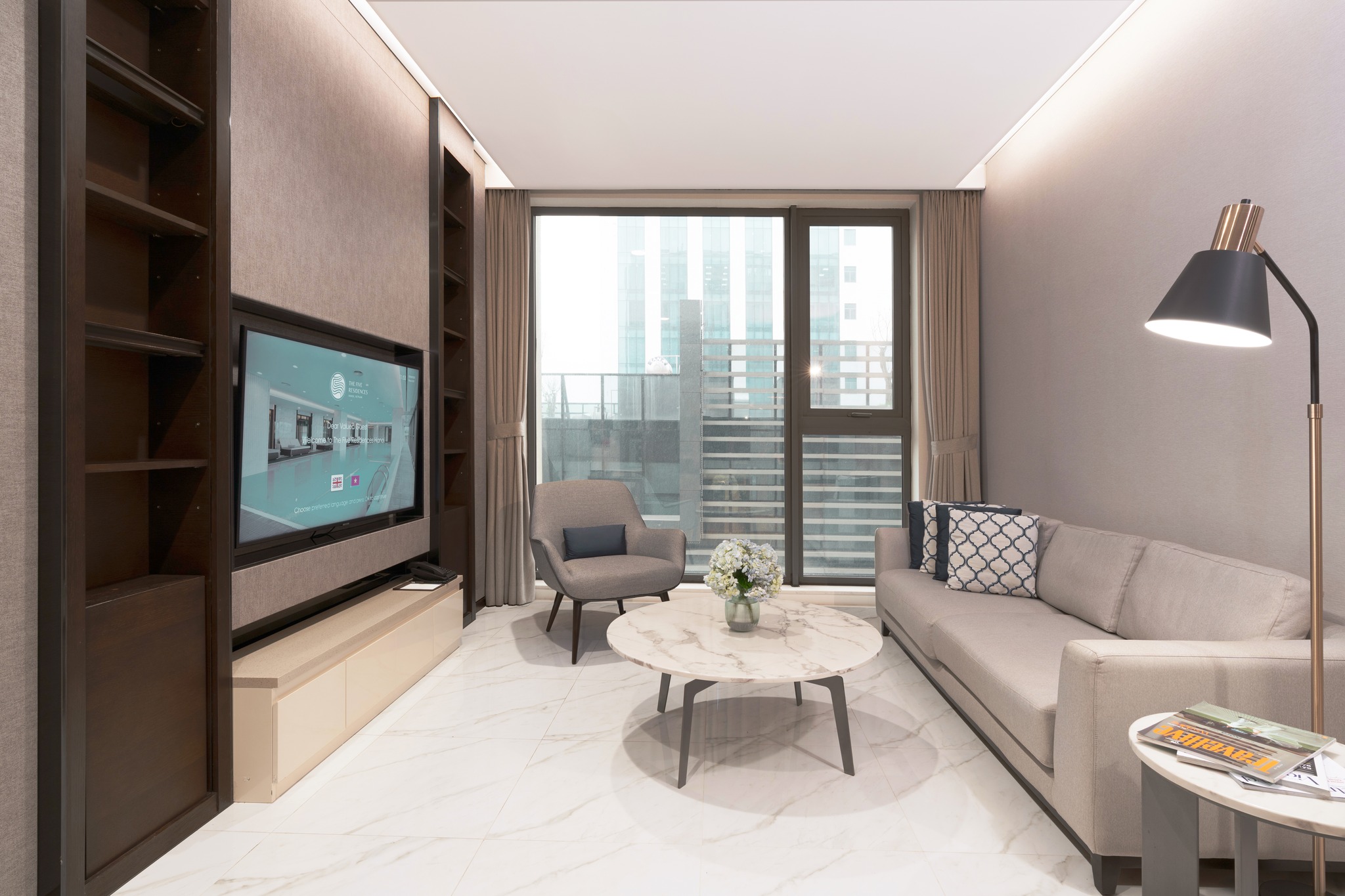 Whether you are here for a short or long stay, the One Bedroom Premier offers the perfect balance to your lifestyle. The elegant serviced apartments feature a work space, a separate living and dining room, and a smart TV in the bedroom and living room.