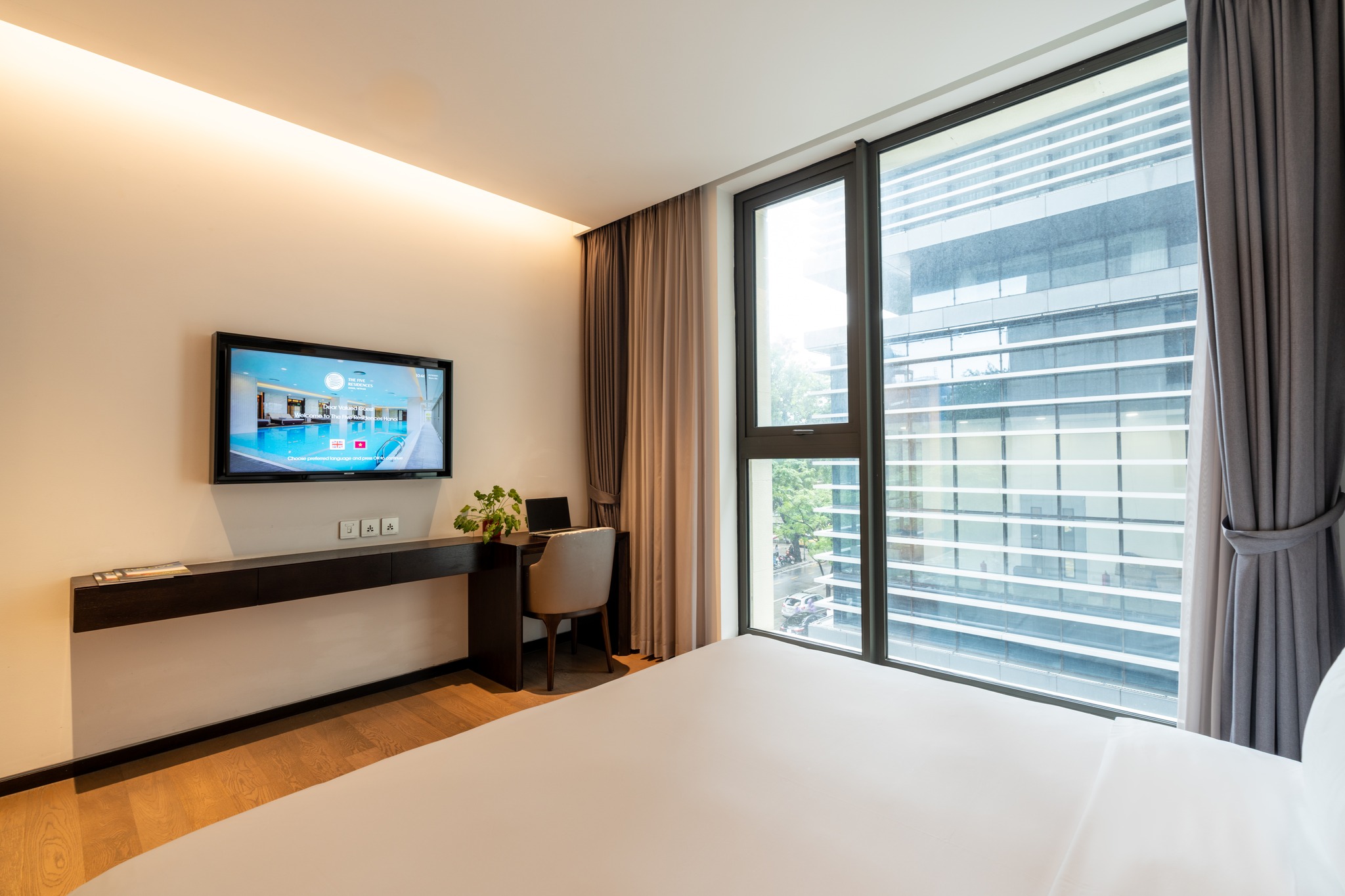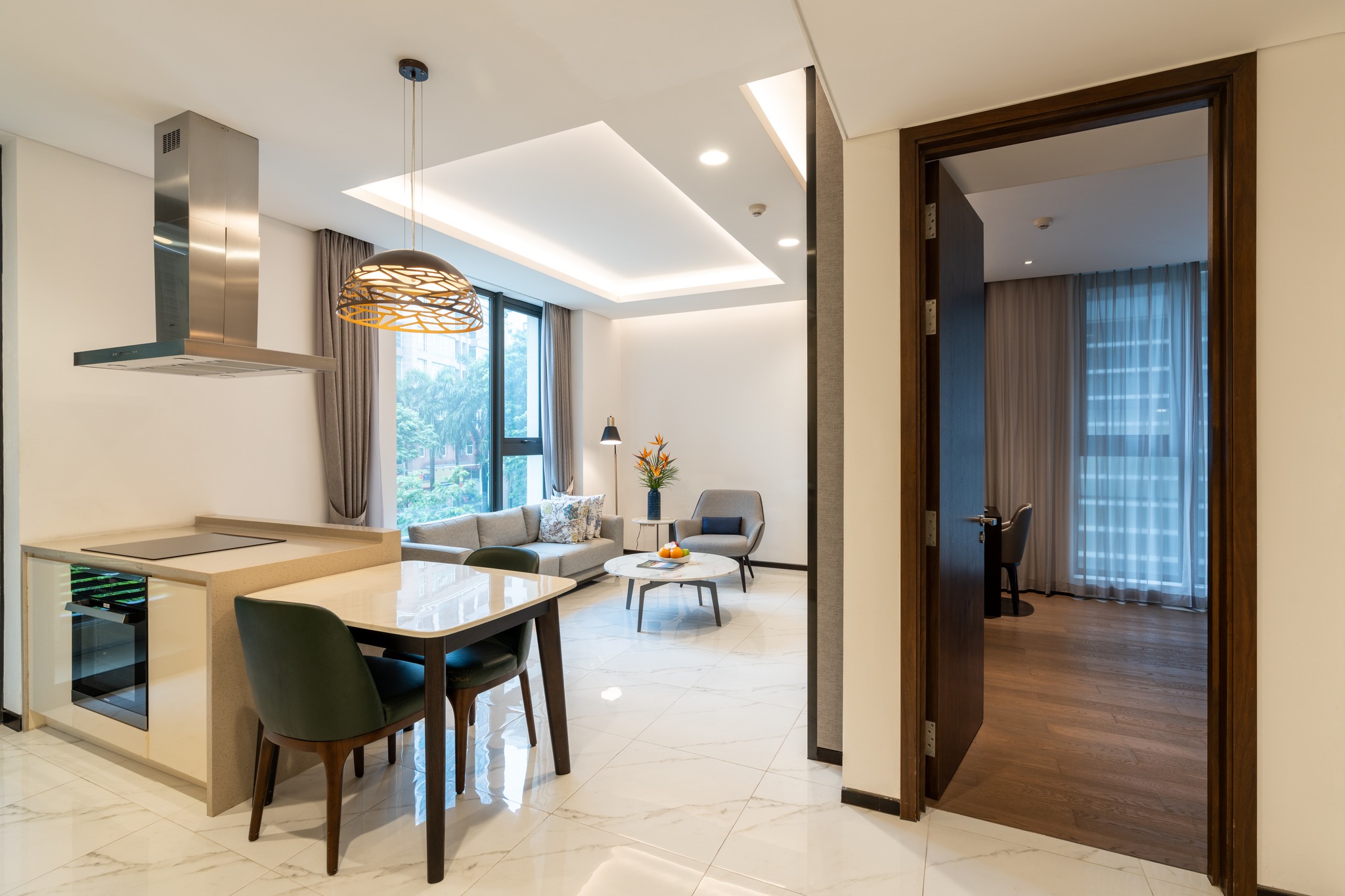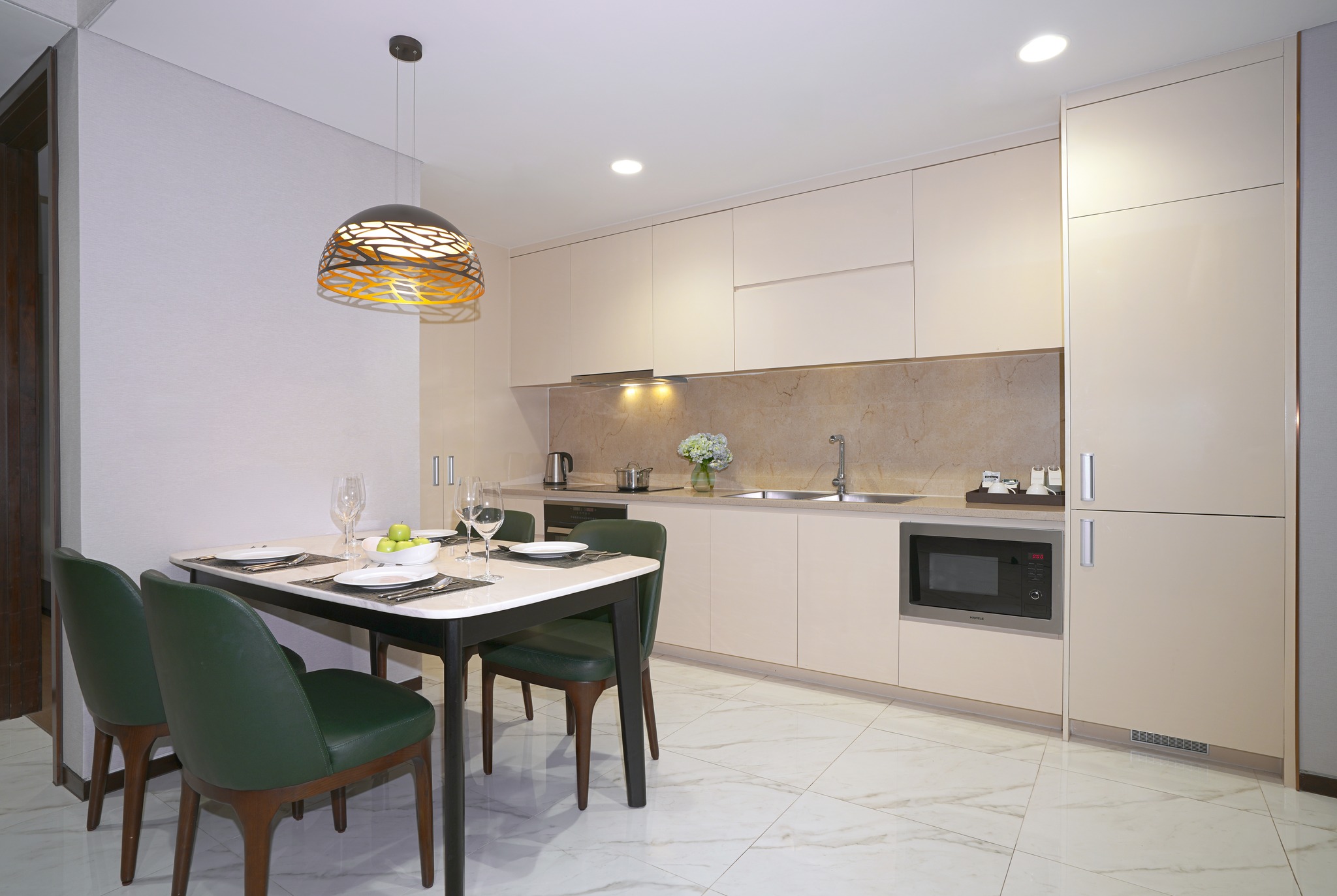 Rediscover your balance at the Two Bedroom Executive. Thoughtfully designed for your family, the serviced residences in Hanoi feature a king bed in the master bedroom, queen bed in the second bedroom, kitchen and a smart TV in the bedrooms and living room.