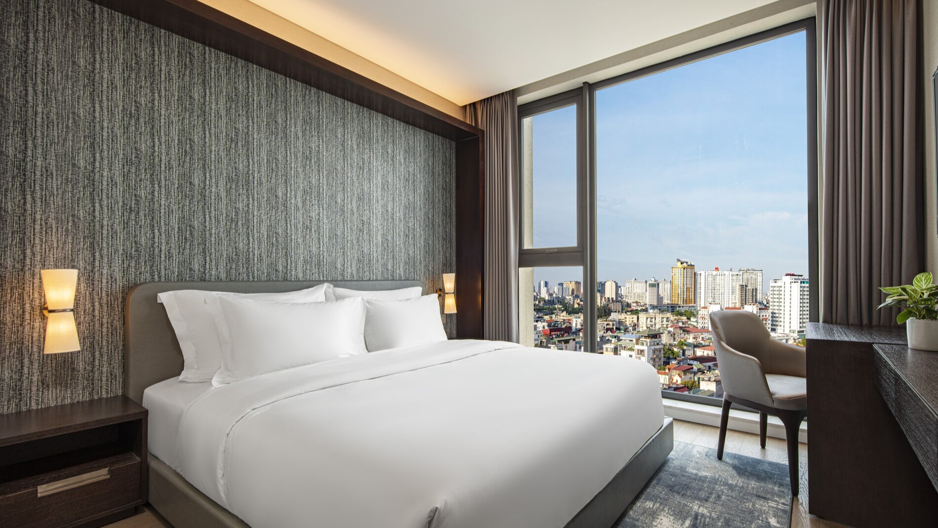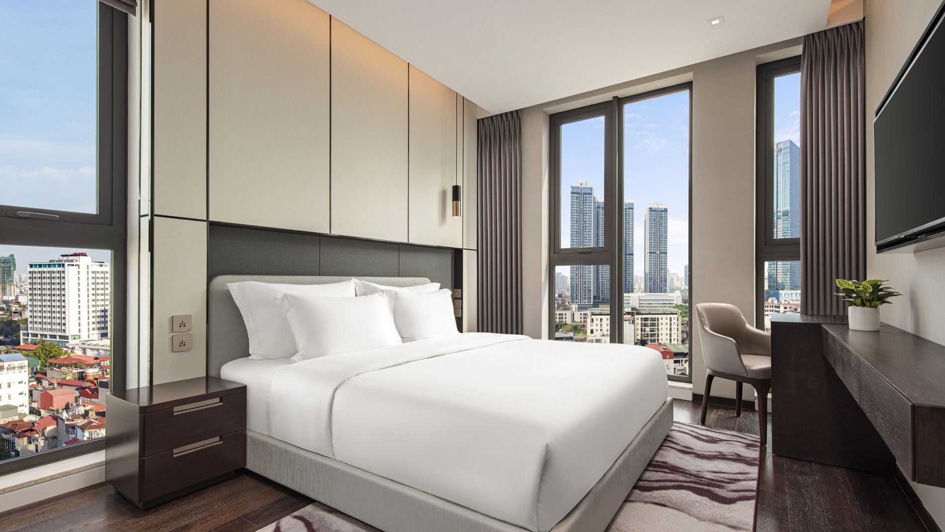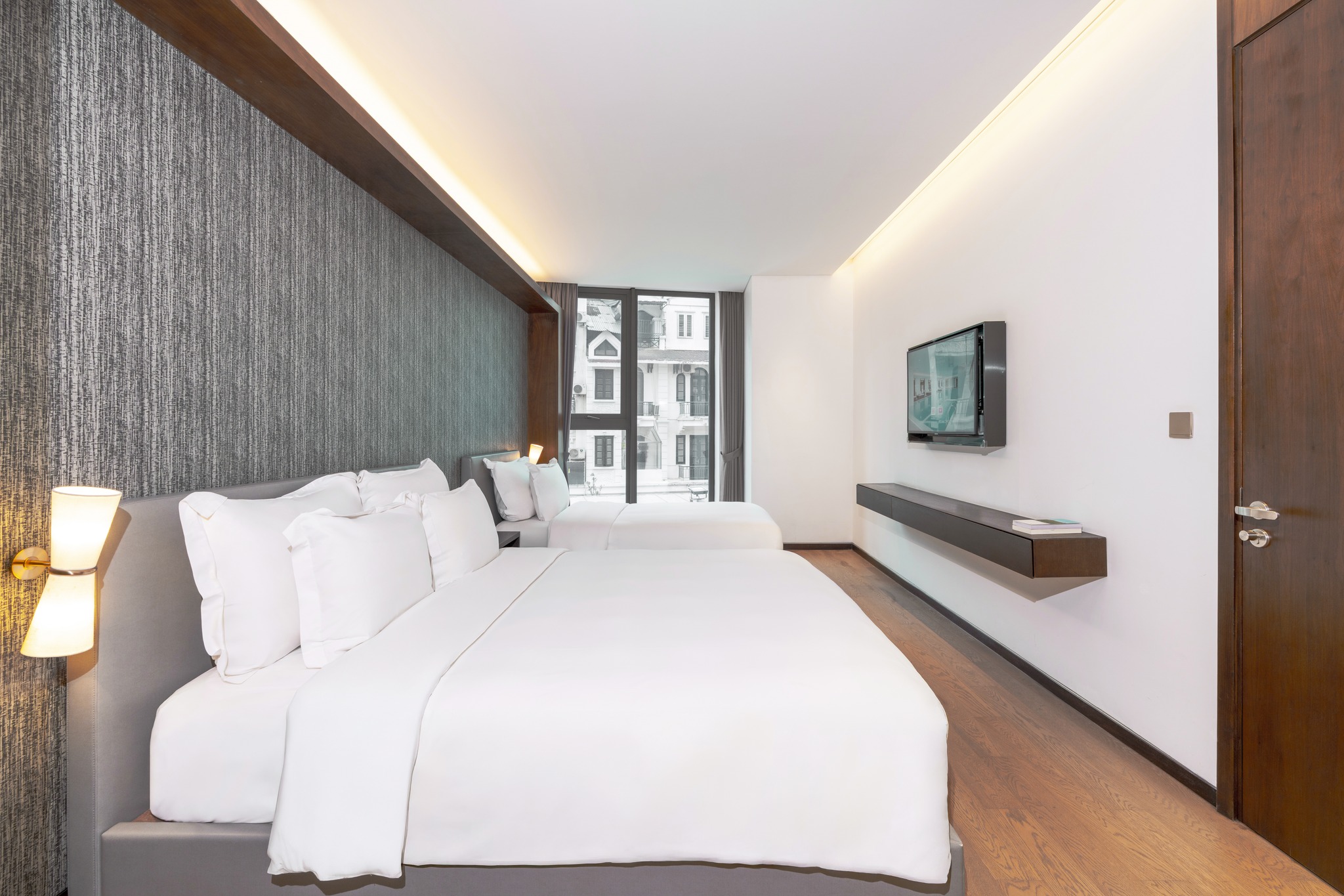 Rediscover your balance at the Two Bedroom Executive. Thoughtfully designed for your family, the serviced residences in Hanoi feature a king bed in the master bedroom, queen bed in the second bedroom, kitchen and a smart TV in the bedrooms and living room.
