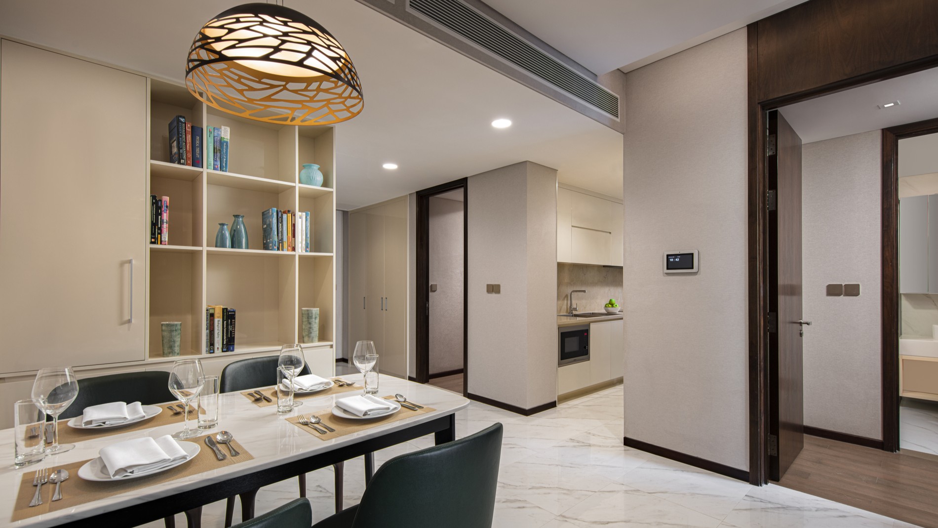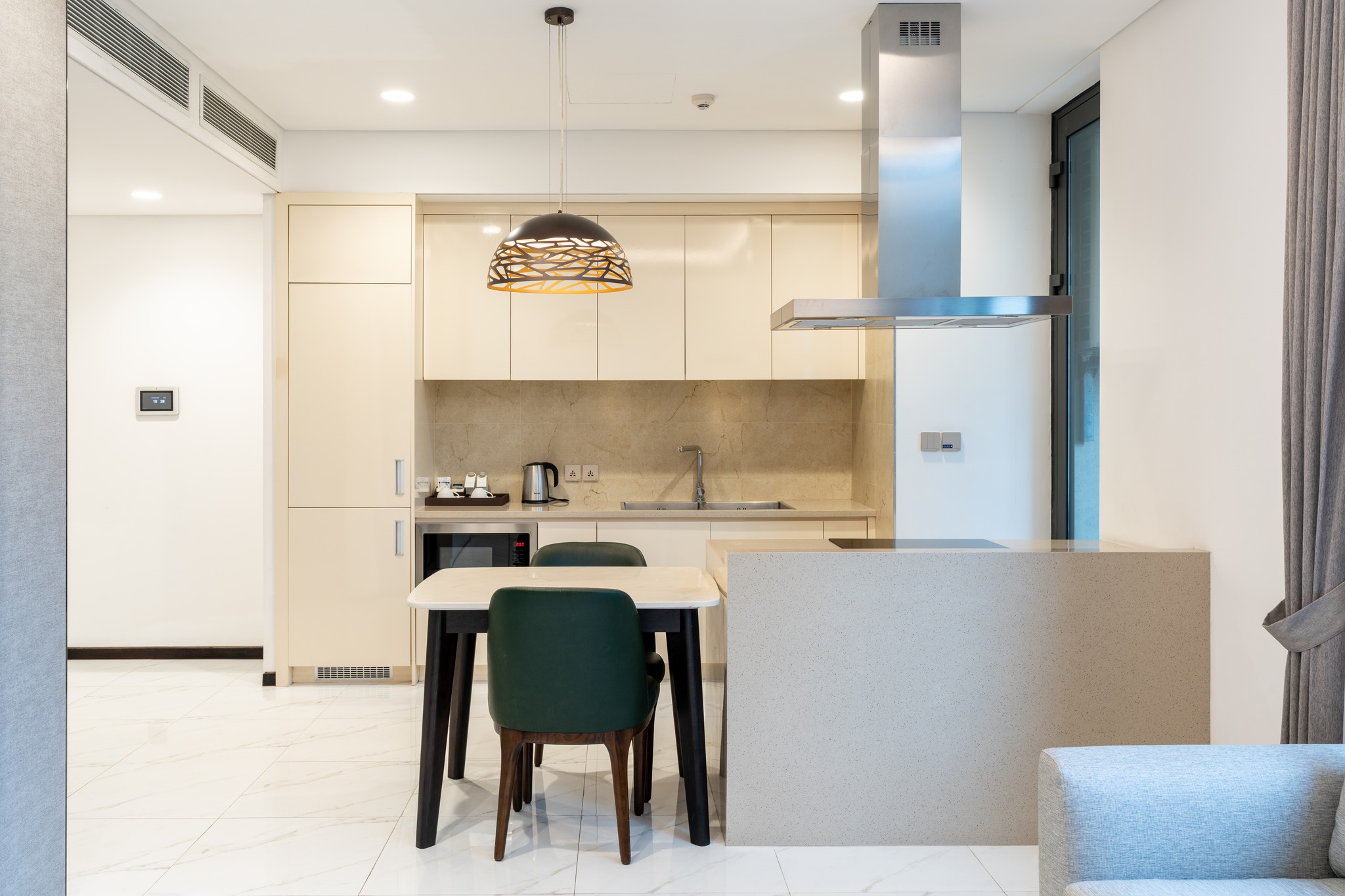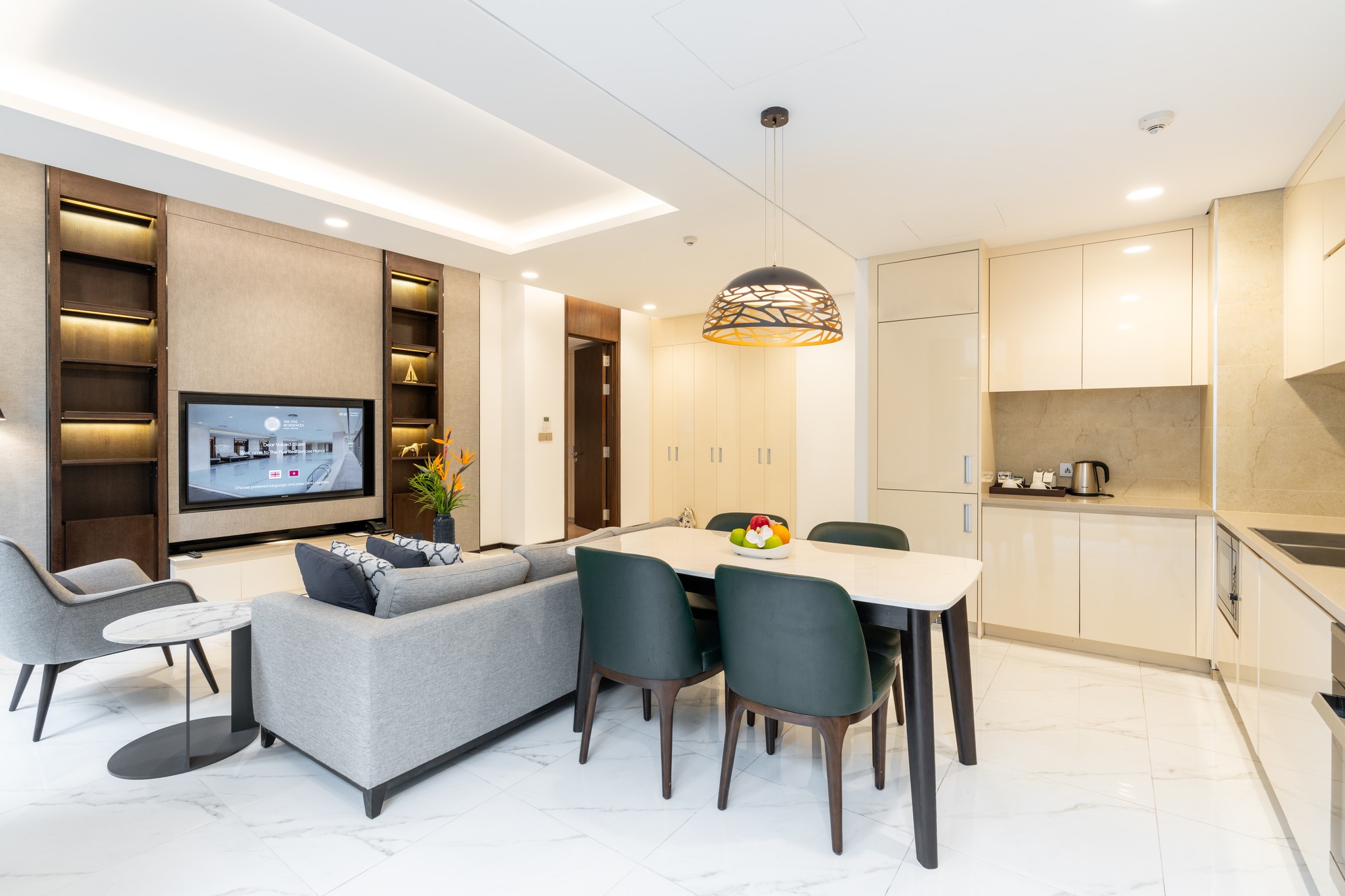 From thoughtful touches in the decor to the subtle amenities not immediately visible, the Two Bedroom Premier seamlessly blends comfort and tranquility. These family-friendly serviced apartments feature king-size beds in both bedrooms, a separate living and dining area, a well-equipped kitchen, and two bathrooms with both showers and bathtubs.
