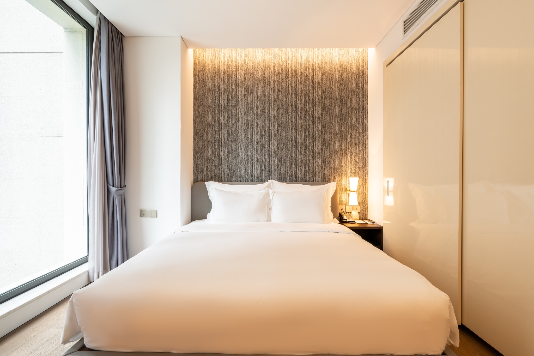 The Two Bedroom Superior offers a refined living experience with two elegantly designed bedrooms, each featuring plush bedding and ample natural light for ultimate comfort. The spacious living area is complemented by modern furnishings, a sleek dining space, and a fully equipped kitchen with high-end appliances. The stylish bathroom includes premium amenities, ensuring a relaxing retreat. Perfect for families, small groups, or extended stays in the heart of the city.
