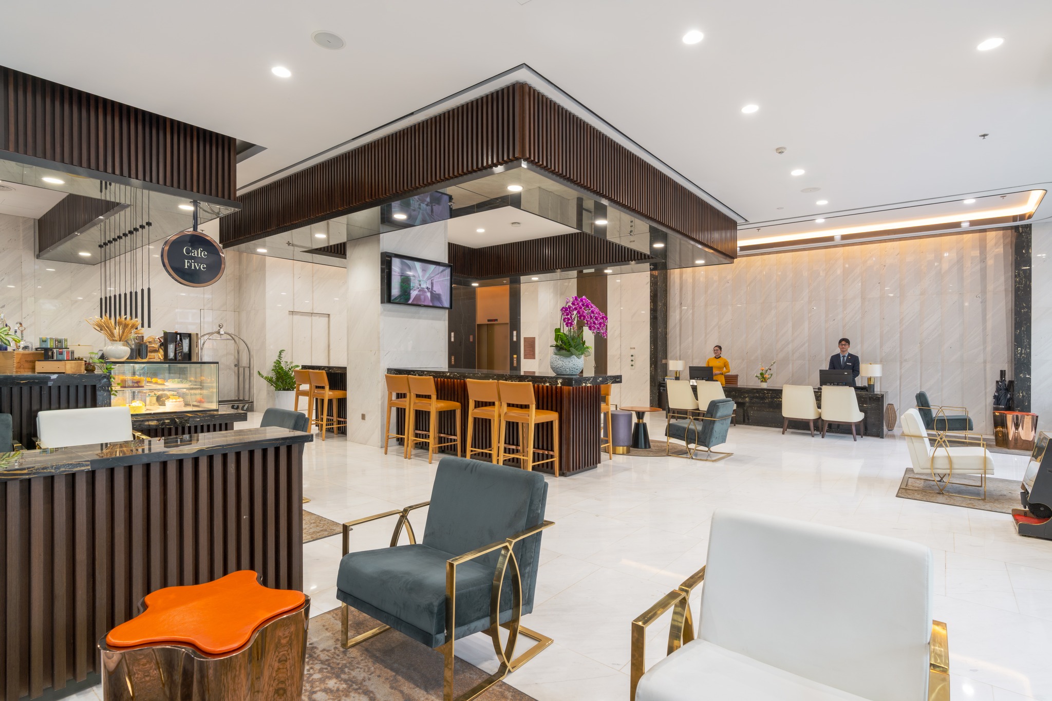 Sophisticated and contemporary, the café at our Hanoi serviced residences serves premium coffee and delicate light snacks.