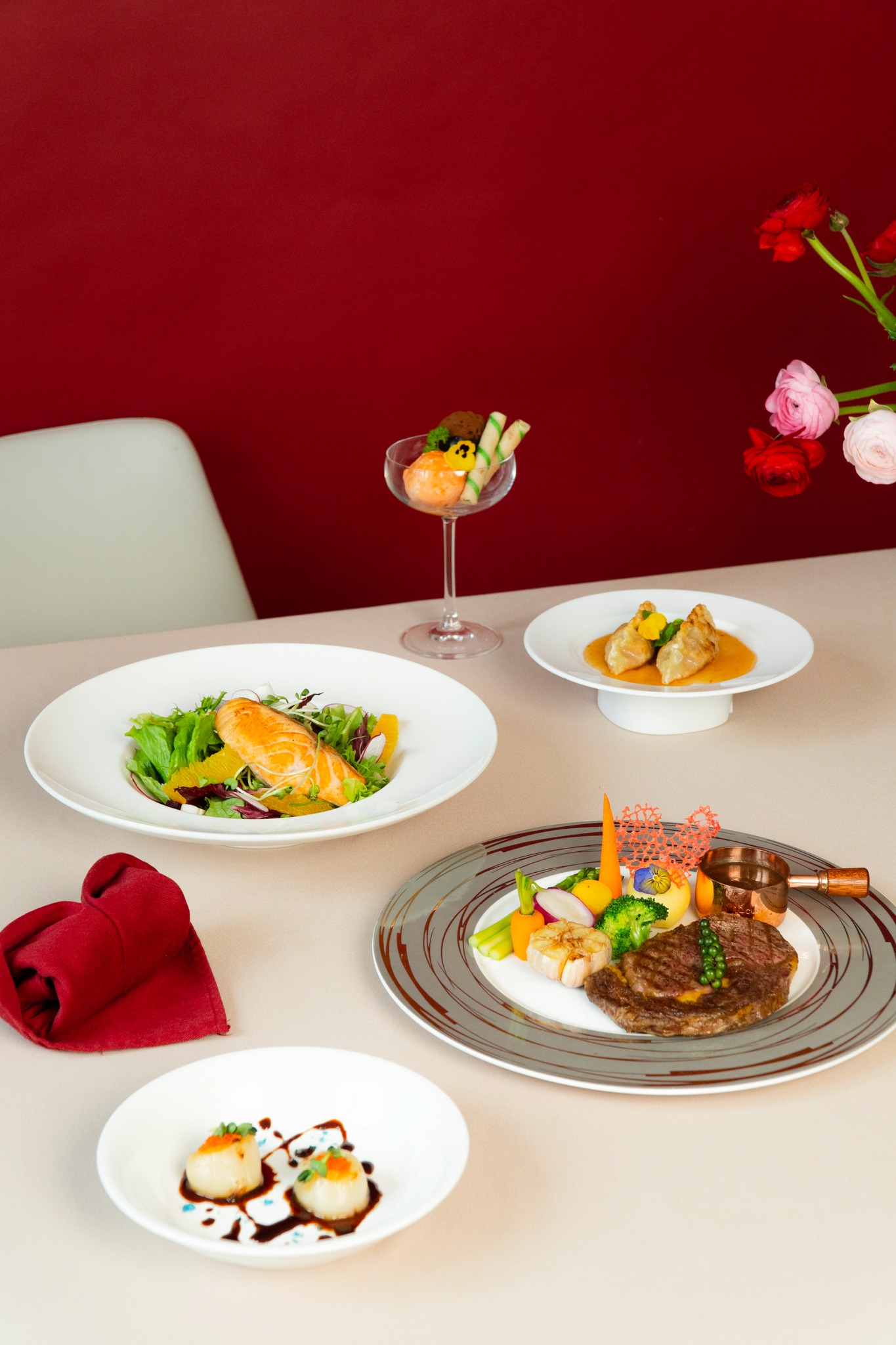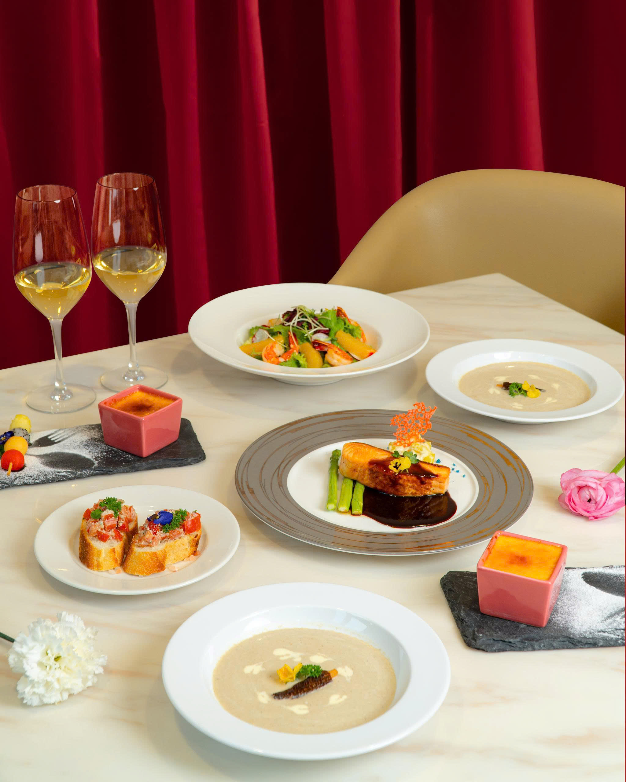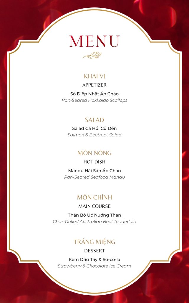 Trao gửi yêu thương cùng nửa kia trong những khoảnh khắc dịu dàng cùng Love in Bloom – thực đơn Valentine dành riêng cho hai người. Một sự hòa quyện tinh tế của ẩm thực fusion mở ra một bữa tối ấm áp, trong không gian riêng tư và thanh lịch tại nhà hàng Five.